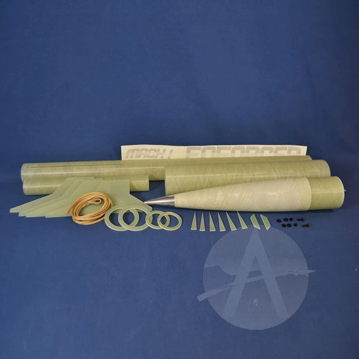 The Enforcer is a high-power capable rocket made from fiberglass tubes. It features a 3-inch diameter fiberglass nose cone with an aluminum tip. It’s stylish multi-diameter body with a hammerhead nose is sure to be a favorite in your fleet. High power capable with a 38mm engine mount.
