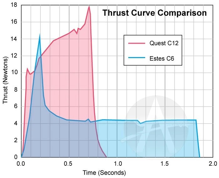 The Quest C12-4 is a great all-around motor for your typical rockets. It is particularly suited for heavier or larger diameter rockets. It features composite propellant, which has twice the energy as a black powder motor. Same size and diameter as an Estes motor, so it fits all your favorite rockets. But this is for single-stage rockets only, as it cannot be staged.
