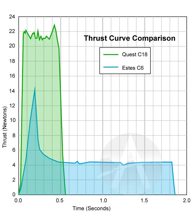 The Quest C18-4 is a great all-around motor for your typical rockets. It is particularly suited for heavier or larger diameter rockets. It features composite propellant, which has twice the energy as a black powder motor. Same size and diameter as an Estes motor, so it fits all your favorite rockets. But this is for single-stage rockets only, as it cannot be staged.