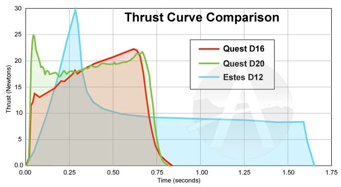 The Quest D20-4 is a great all-around motor for your typical rockets. It is particularly suited for heavier or larger diameter rockets. It features composite propellant, which has twice the energy as a black powder motor. Same size and diameter as an Estes motor, so it fits all your favorite rockets. But this is for single-stage rockets only, as it cannot be staged.